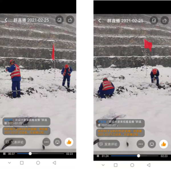 2月24日傍晚,一場瑞雪突然降臨,焦作迎來了2021年的第一場雪。這一場突如其來的降雪,給我們原計劃25日的爆破作業(yè)帶來了挑戰(zhàn)。 25日早,雪已經(jīng)停了,并且氣溫徘徊在零度之上,雖然冷,但道路沒有結冰,炸藥運輸車也安全準時的送達到了現(xiàn)場。為了順利開展爆破作業(yè),馬村分公司的同志們在劉黨經(jīng)理的帶領下,吃過早飯后就立即組織進入礦山,開展工作。爆破工作嚴格按照規(guī)定及河南省公安廳的要求下進行,全部流程都進行釘釘直播,留存錄像。 腳踏著皚皚白雪的他們是堅守的勇士,哪怕是雪水濕了鞋襪,濕了褲腳,手指被凍得通紅,他們依然嚴格按照操作規(guī)范,認真完成每一個步驟。 致敬!風雪中的礦山人!致敬!所有風雪中努力工作的第一線人員! (以下圖片來源于爆破錄像截圖及釘釘直播截圖)  |