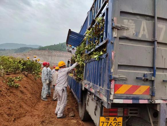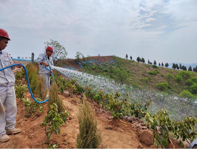 種植完后,大家拖著長(zhǎng)長(zhǎng)的水管,從水車(chē)上接通,水花劃出美麗的彩虹,一道道水線(xiàn)將生命之源給予剛剛種下的綠色希望。雖然大家已經(jīng)汗流浹背,但是想著能把我們的礦山建設(shè)成為綠色礦山,花園式礦山,一個(gè)個(gè)都擼起袖子卯足勁加油干。