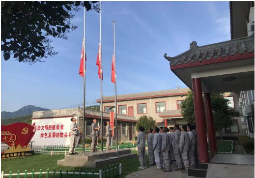 伴隨著雄壯的《義勇軍進行曲》,五星紅旗冉冉升起,隨風(fēng)飄揚,全體員工齊唱國歌,向國旗行注目禮,目光凝視著迎風(fēng)飄揚的五星紅旗,心中寄托著對黨無限的熱愛、崇高的敬意以及深情的祝福。